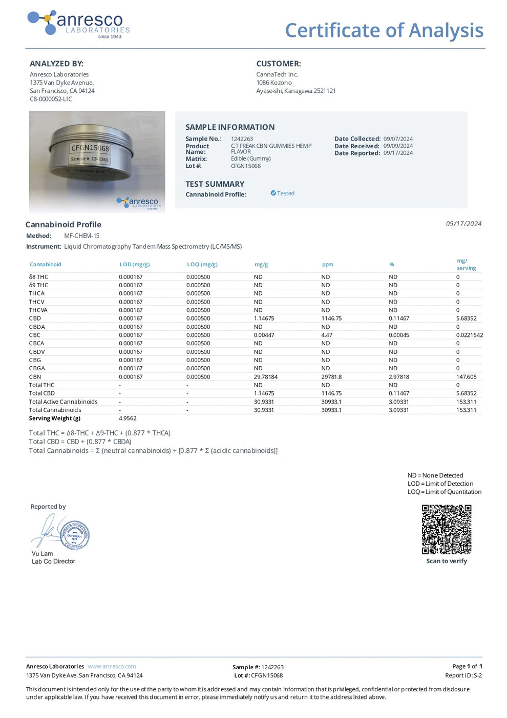 CANNATECH CBN グミ 16粒 CBN 2,400mg グレープ味『 超高濃度 CBN 150mg /粒』 ブロードスペクトラム cbn CT Freak FEEL DEEPLY