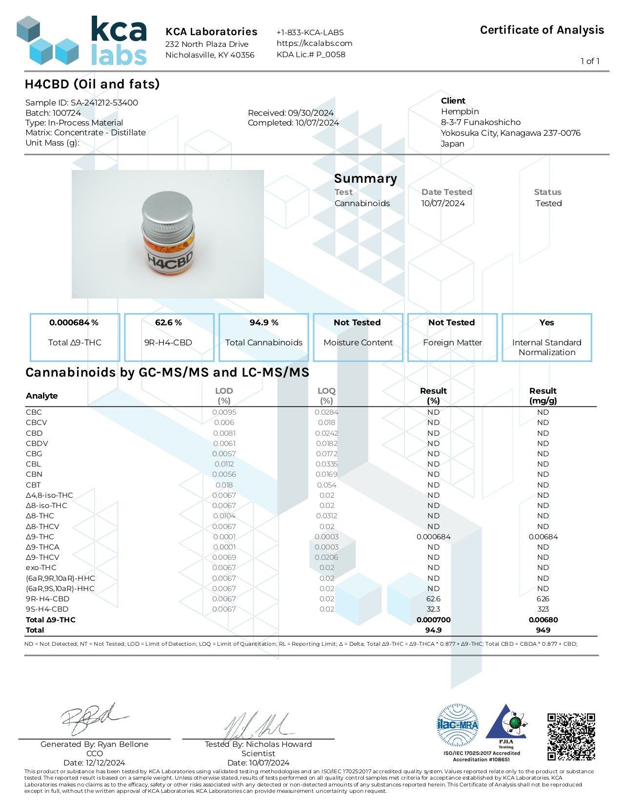 THC約6.9ppm(基準値以下)※添付写真のCOAをご確認下さい。